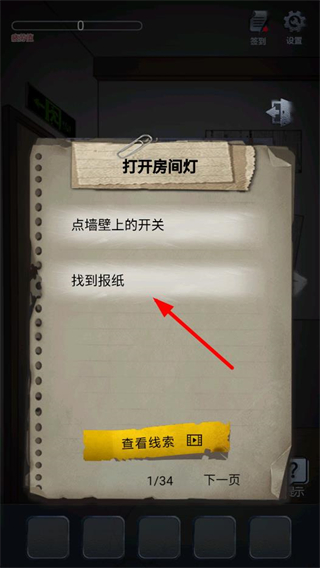 3、根據任務提示打開房間燈,找到報紙等線索,通過查看線索收集信息,助力解開校園懸疑謎題。