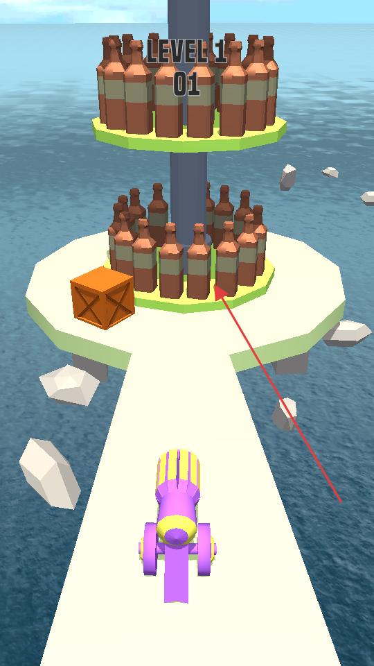 4、不斷射擊平臺上的瓶子,直到清理完當前層的所有瓶子,推進到下一層,同時留意旁邊的木箱,不能擊中它,助力關卡通關。