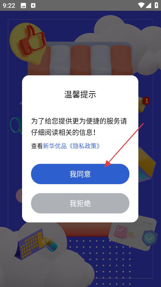 1、下載安裝完成后進入,需在用戶協議和隱私政策界面點擊同意,接受相關條款后才能進入應用。