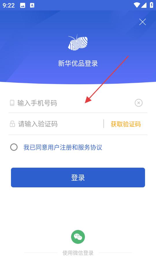 3、登錄界面,用戶可輸入手機號碼和驗證碼登錄,也可選擇使用微信登錄,底部有相關協議的勾選框。