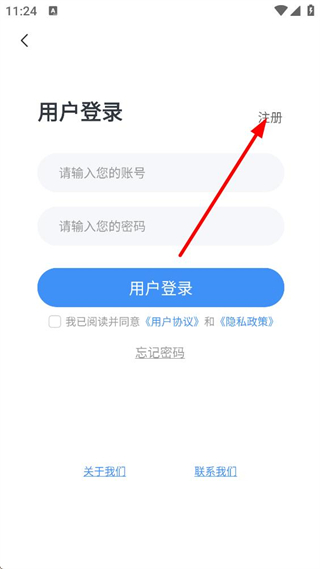 3、進入用戶登錄頁面,輸入賬號與密碼,勾選相關協議后點擊用戶登錄,也可選擇注冊新賬號或通過忘記密碼找回賬號信息。
