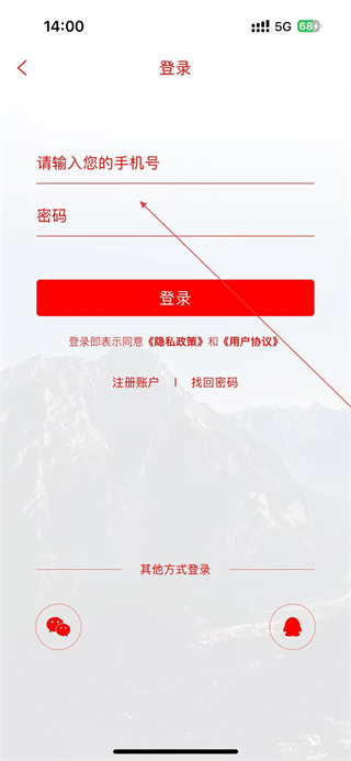 1、打開新新邵app,進入登錄頁面,點擊手機號輸入框填寫號碼,再點擊密碼輸入框輸入密碼,確認信息后點擊登錄按鈕,完成賬號登錄。