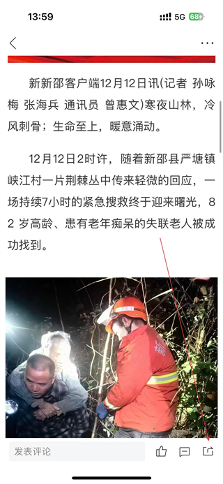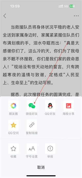 4、瀏覽完資訊后找到分享相關按鈕,點擊后選擇微信分享渠道,將該資訊內容分享給微信好友。
