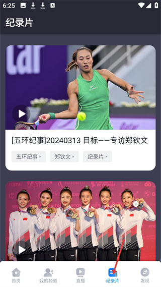 3、紀錄片板塊底部導航欄精準定位至此,五環紀事、鄭欽文等標簽方便快速關聯同類內容,讓體育迷在紀錄片里深度挖掘賽事背后的熱血故事,感受奧林匹克的獨特魅力。