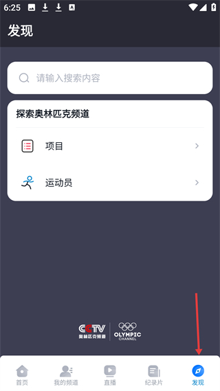 4、發現頁,設有搜索功能,可探索奧林匹克頻道的運動項目和運動員信息,助力用戶深入了解各類體育內容。