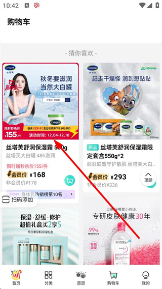 4、進入購物車頁面,能看到猜你喜歡的商品,展示商品的限時價格及活動信息,可查看商品詳情,也能對心儀商品進行后續的購買相關操作。
