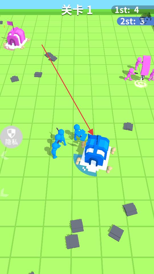 2、操控藍色方塊人移動到白色標記的區域,該區域是可占領的領地,同時留意粉色方塊人,它們也會爭奪領地,要搶先占據有利位置。