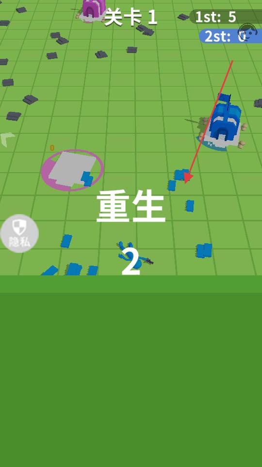 4、若方塊人被擊敗會出現重生提示,等待重生后再次進入場地,繼續爭奪領地、建造建筑,通過積累領地和建筑數量,在關卡中獲得更高分數。