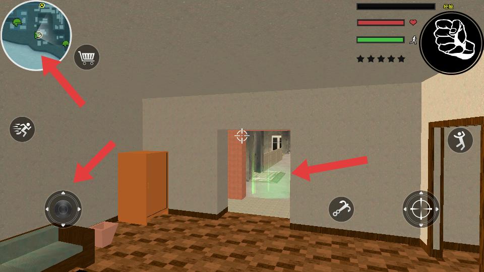 3、進入室內場景,借助小地圖和虛擬按鍵,操控角色在房間內移動,尋找出口或任務目標,應對可能出現的狀況。