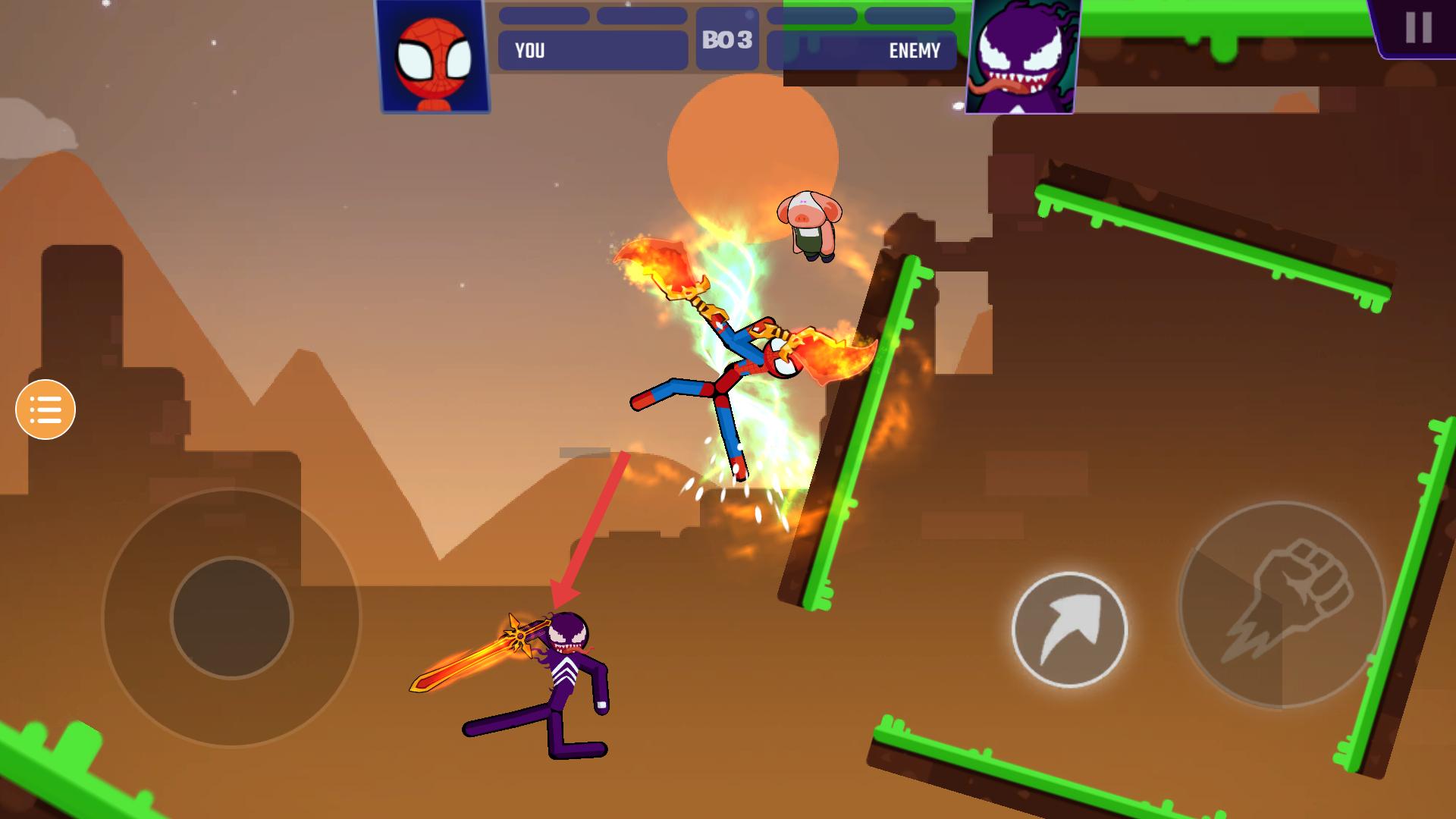 火柴人對決2是一款極具娛樂性的雙人競技游戲,采用經典火柴人風格構建鮮明角色形象。多元化的對戰模式搭配豐富武器系統,創造出充滿變化性的格斗策略。流暢的操作手感配合震撼的打擊特效,帶來酣暢淋漓的戰斗體驗。特別設計的漫威聯動角色為喜愛超級英雄題材的用戶增添額外驚喜。