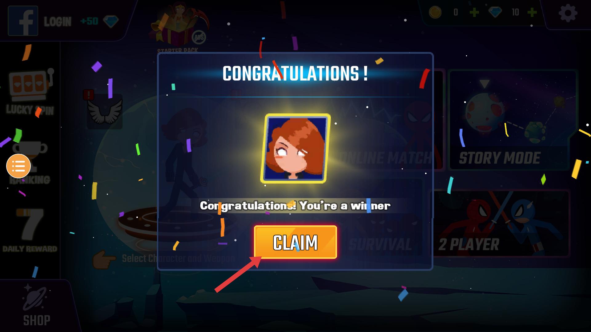 3、玩家成功獲勝后,點擊CLAIM按鈕,即可領取勝利獎勵,收獲游戲成果。