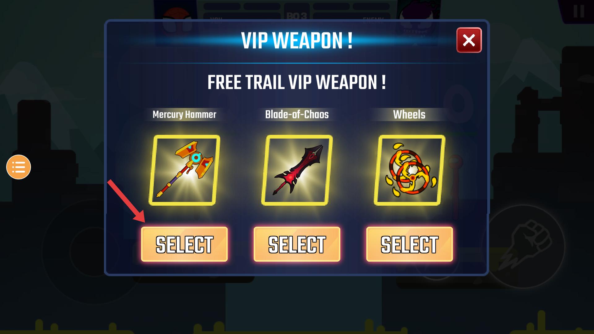 4、在VIP武器選擇界面,有三種武器可供選擇,點擊對應武器下方的SELECT按鈕,就能選用該VIP武器。