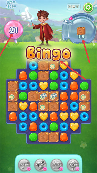 2、成功消除甜點,達成階段性目標時,會出現Bingo提示,此時能看到目標物品數量減少,繼續向關卡完成邁進。