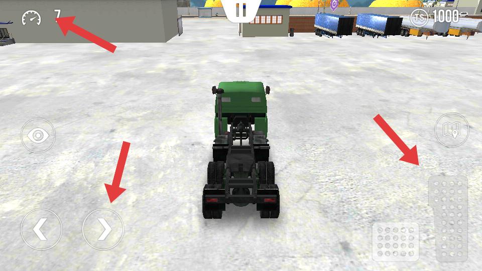 3、購買卡車后,點擊開始,進入駕駛場景,能看到卡車的速度表等,利用左右方向按鈕控制卡車轉向,開始駕駛。