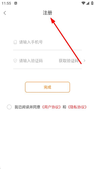 4、進入注冊界面,需輸入手機號、驗證碼,勾選同意用戶協議和隱私協議后完成注冊,方便新用戶加入使用該應用。
