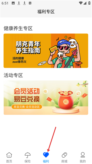 3、福利專區有健康養生和會員活動專區,提供養生指南和易豆兌換活動,為用戶帶來養生資訊與會員福利。