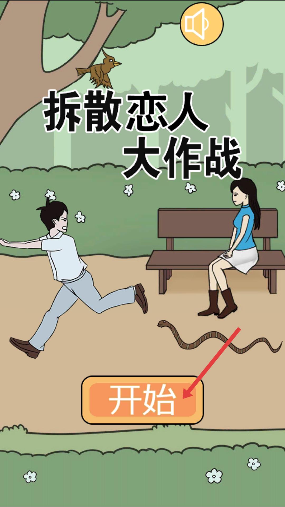 1、游戲主界面,點擊開始按鈕,進入拆散戀人的挑戰,準備在不同場景中實施拆散計劃。