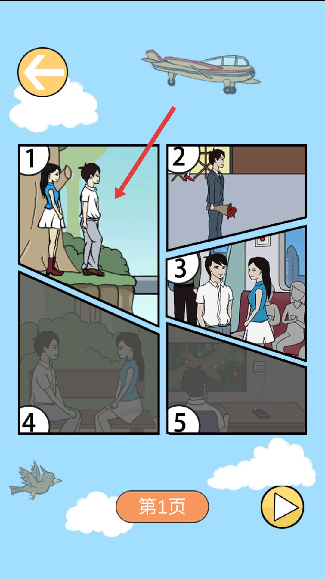 2、選擇關卡界面,點擊標有1的場景,進入第一關,該場景是在樹下,開啟這一關卡的拆散任務。
