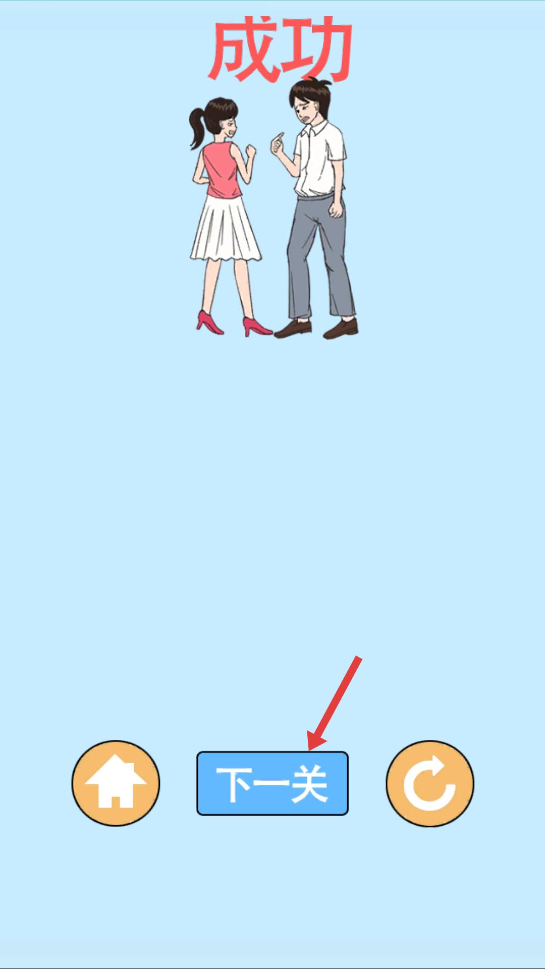 4、成功完成關卡后,界面顯示成功,點擊下一關按鈕,繼續挑戰新的關卡,開啟新的拆散戀人場景。