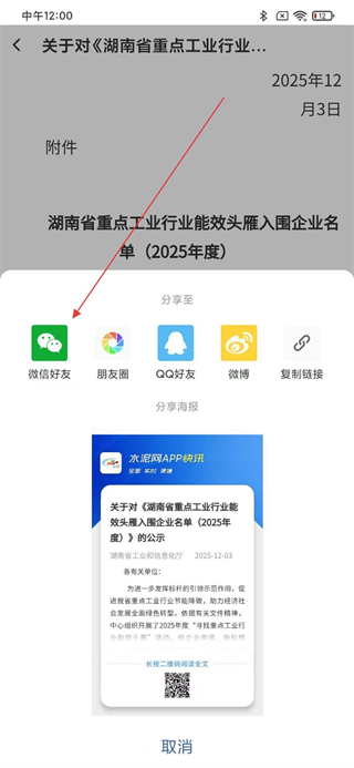 4、在分享選項中選擇想要分享的渠道,比如微信好友,點擊對應選項,可將該資訊內容分享給朋友。