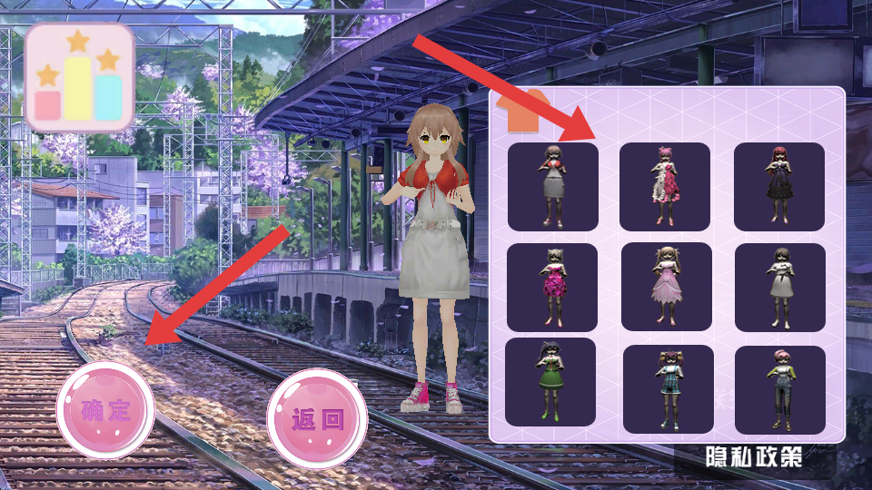 1、進入游戲,可在多種服裝里挑選喜歡的,搭配好后點擊確定,就能開啟游戲里的槍戰冒險。