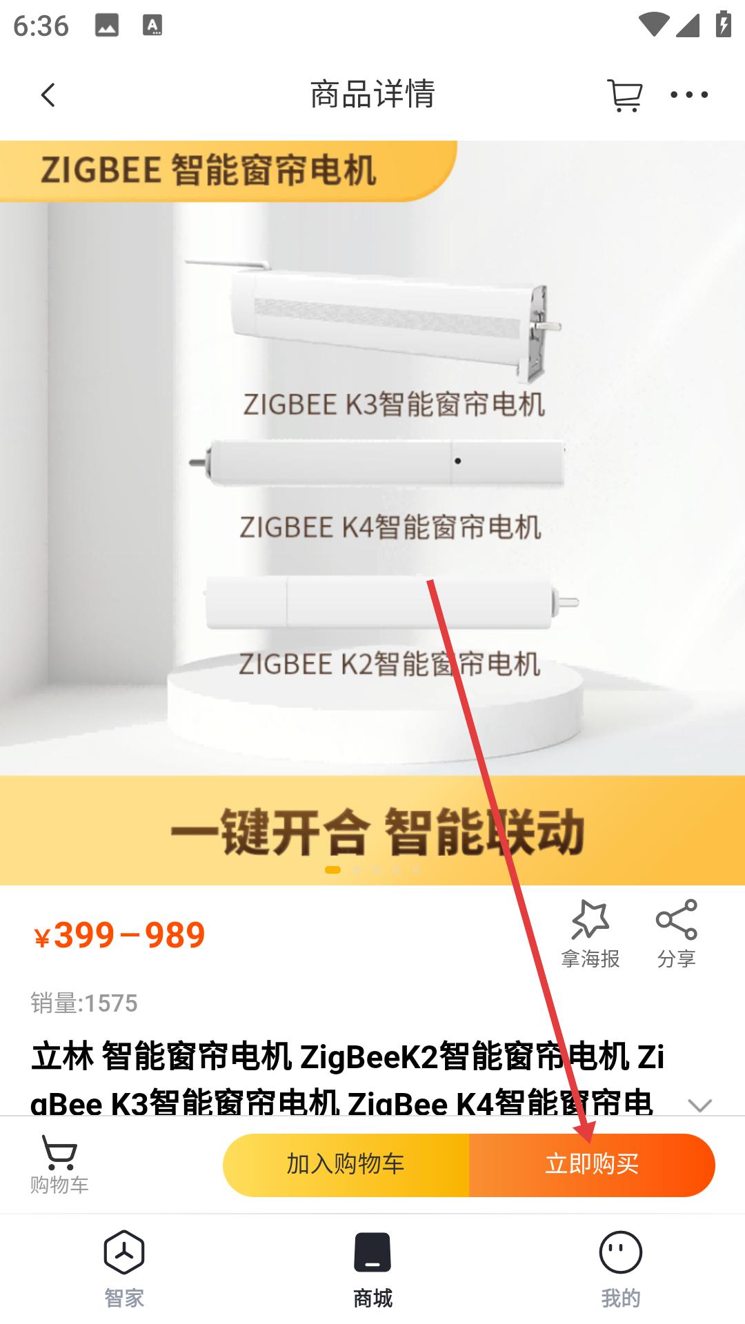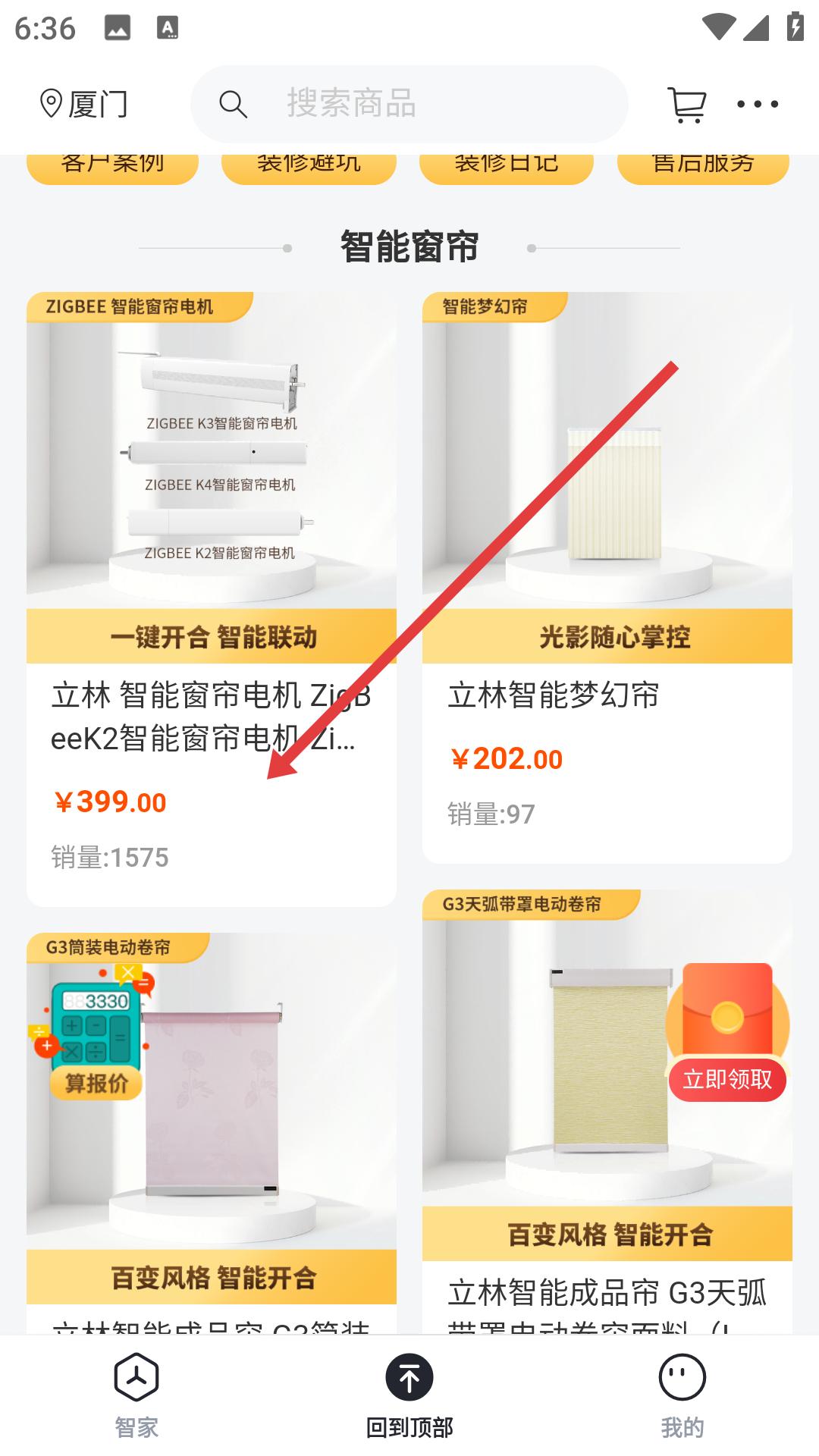 3、完成通知權限設置后,進入商城頁面瀏覽智能窗簾相關商品,看到立林智能窗簾電機等商品,點擊心儀的智能窗簾商品。