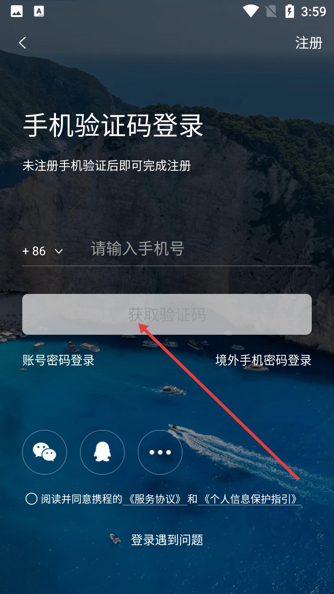 3、手機驗證碼登錄時輸入手機號獲取驗證碼,也可選擇賬號密碼或境外手機密碼登錄,還能通過微信等方式快捷登錄。