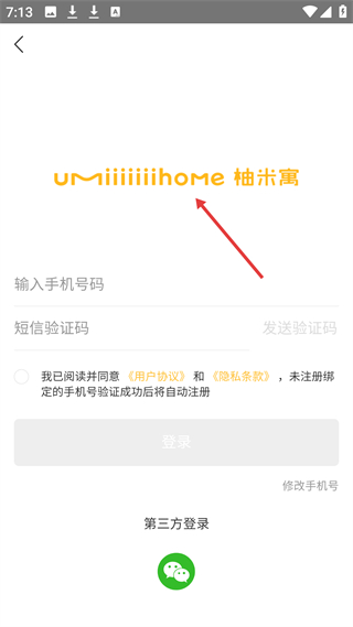 1、登錄頁支持手機號驗證碼及微信第三方登錄,需同意用戶協議和隱私條款,未注冊手機號驗證后自動注冊。