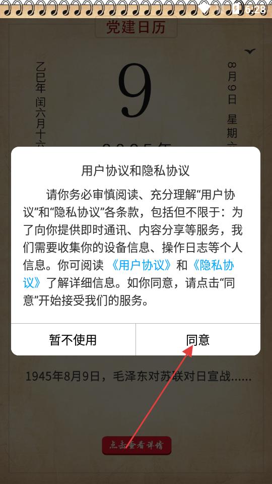 1、首次打開APP會彈出用戶協議及隱私政策界面,需仔細閱讀后點擊同意才能繼續使用APP,這一步是為了確保用戶了解并同意平臺使用個人信息的規則。