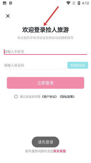 1、旅游登錄頁,用戶輸手機號和驗證碼,勾選協議可登錄,未注冊手機號驗證后自動建號,底部有客服入口。