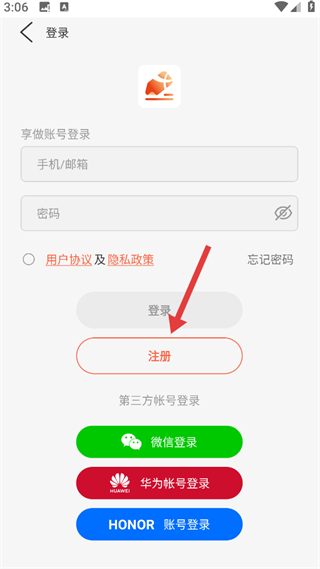1、登錄享做筆記可選用享做賬號,輸入手機、郵箱與密碼并勾選協議,也能通過微信等第三方賬號登錄,無賬號可點擊注冊創建。