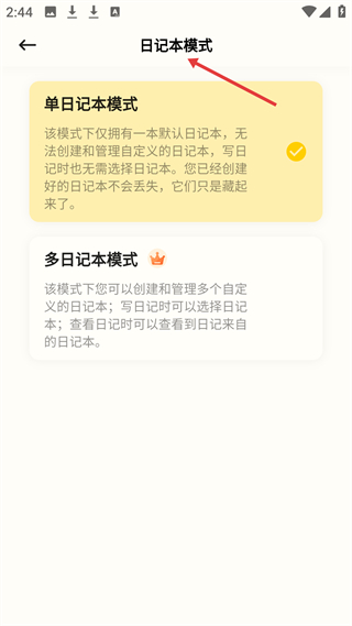 4、日記本模式,分單日記本和多日記本模式,單模式含默認日記本,多模式可創建管理多個自定義日記本,滿足不同需求。
