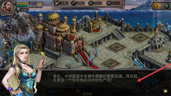 1、進入城堡場景,需建造伐木場啟動木材生產,木材是城市發展的重要資源,以此推進城堡建設。