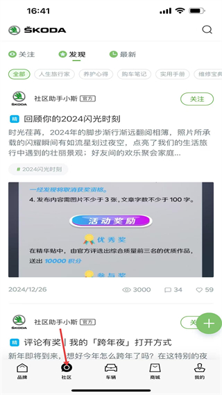 2、社區頁官方發起互動活動,設內容發布規則與積分獎勵,支持車主分享交流,是用戶社交與內容共創的粘性平臺。