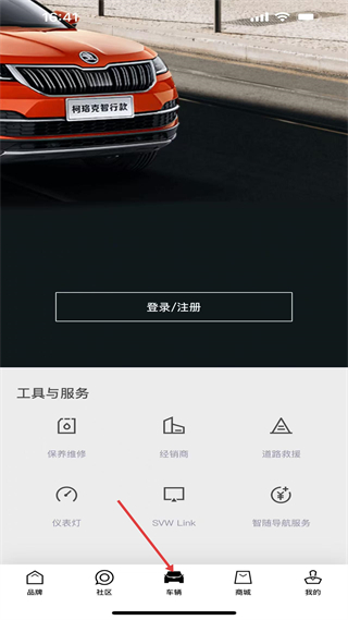 3、車輛頁提供保養、經銷商、救援等用車服務工具,需登錄使用,是覆蓋售后、救援場景的車主服務功能集合。