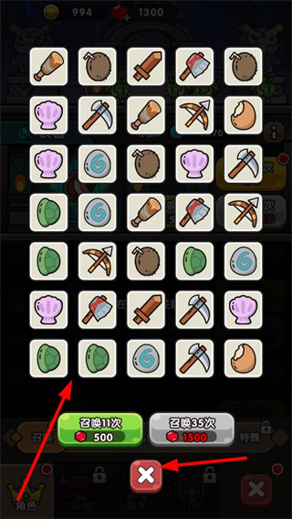 2、召喚后會出現多種物品,如石斧、弓箭等,可查看這些物品,之后關閉界面繼續游戲。