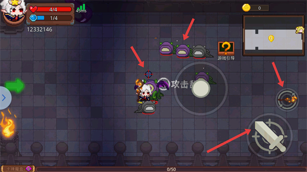 3、遇到敵人時,點擊攻擊按鈕,角色會對敵人發起攻擊,通過持續攻擊,擊敗敵人,獲取戰斗收益。