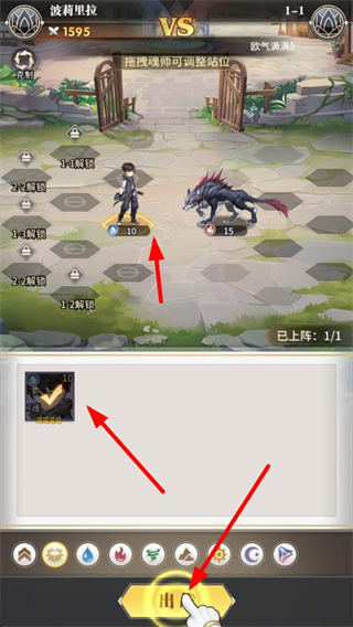 1、拖拽魂師調整站位,點擊出戰,開啟主線戰斗,利用魂師的技能和屬性,擊敗黑狼等怪物,推進主線劇情。