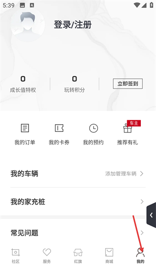 4、我的頁面支持登錄注冊操作,包含訂單、卡券等個人功能,可管理車輛與充電樁,是用戶的專屬個人中心。