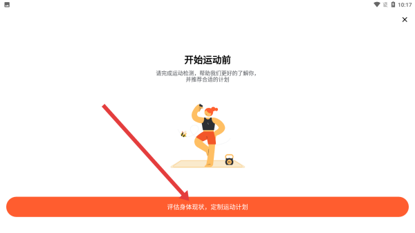 2、開始運動前頁面,點擊評估身體現狀,定制運動計劃按鈕,進入身體信息填寫環節。