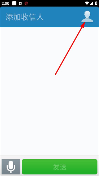 3、進入寫短信界面,點擊添加收信人區域的對應按鈕,可進入選擇收信人的操作頁面,準備選擇短信接收對象。