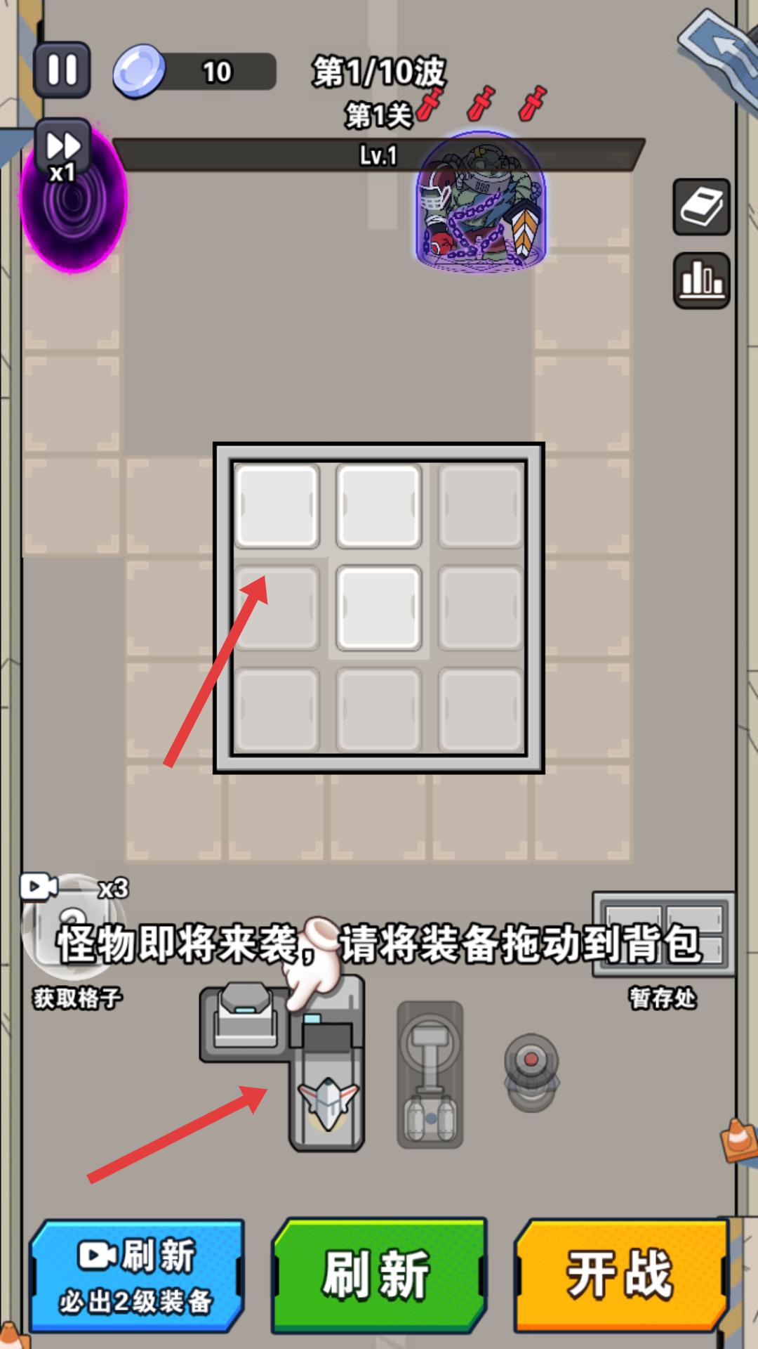 1、怪物即將來襲時,按照提示將裝備拖動到背包中,提前做好裝備準備,以便在戰斗中能更好地抵御怪物進攻。
