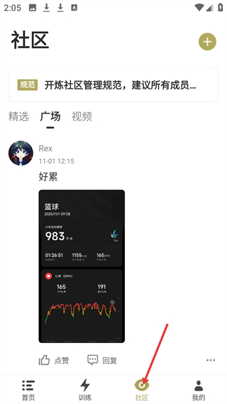 3、社區分精選、廣場、視頻板塊,用戶可分享運動動態、查看他人數據,形成籃球交流社區,激發運動熱情。