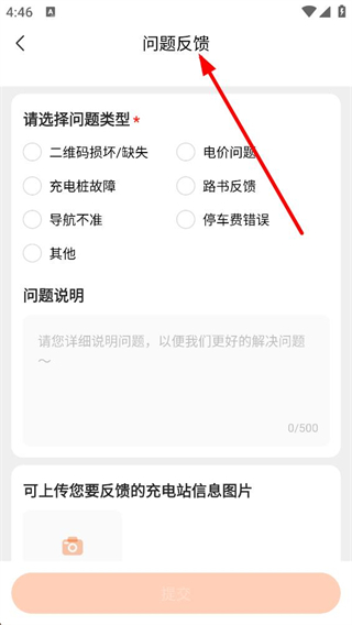 4、進入問題反饋界面,需選擇問題類型如二維碼損壞等,填寫問題說明并可上傳圖片,完成相關內容后提交即可反饋問題。