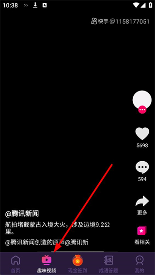 3、進入趣味視頻板塊,可觀看如騰訊新聞發布的視頻內容,視頻右側有點贊、評論、分享等互動功能,滿足用戶觀看和互動需求。