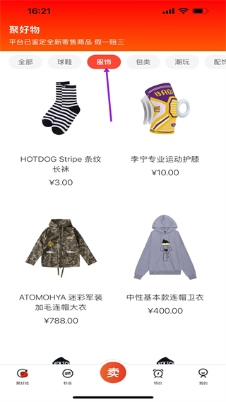 3、服飾分類頁,展示長襪外套等服飾類商品,涵蓋日常穿搭與運動裝備,滿足用戶多樣的服飾消費使用需求。