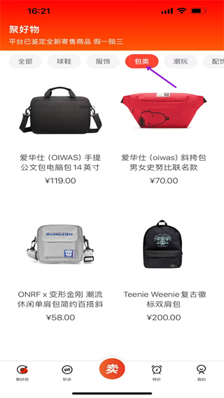1、全部商品頁,展示雙肩包等多品類商品,平臺提供鑒定服務與假一賠三保障,是綜合全面的商品選購入口。