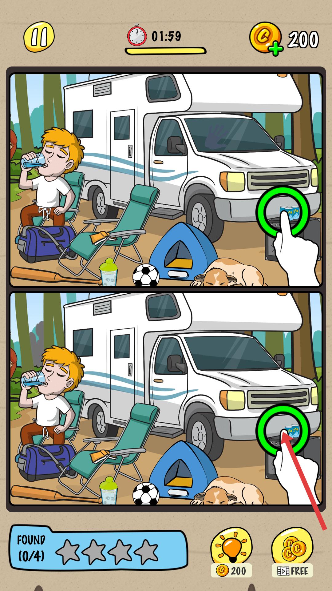 2、進入游戲后,仔細對比上下兩張圖片,點擊圈出的不同之處,比如車輛前的物品,逐步找出差異。