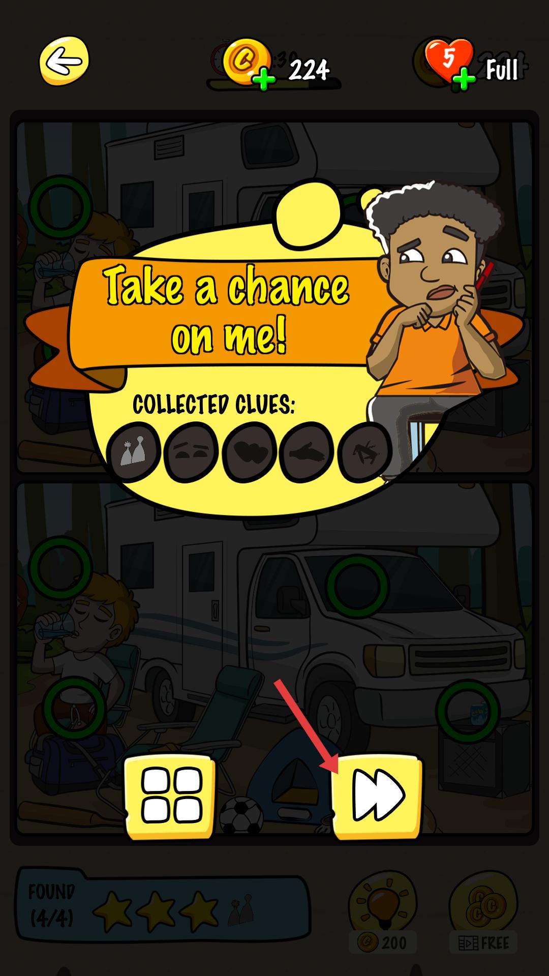 4、成功找出所有不同點后,界面彈出提示,點擊右側的箭頭按鈕,繼續后續游戲流程。