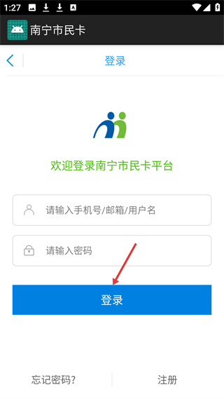1、登錄界面,輸手機號郵箱用戶名和密碼登錄,有忘記密碼和注冊入口,方便用戶進入平臺使用市民卡服務。